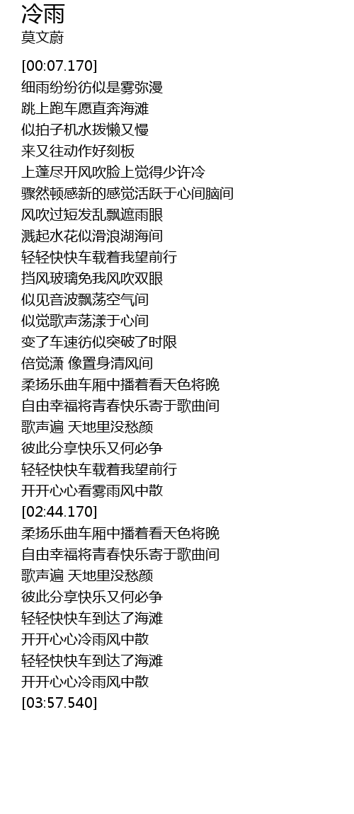 | [00:54.320] | 上蓬尽开风吹脸上觉得少许冷 |