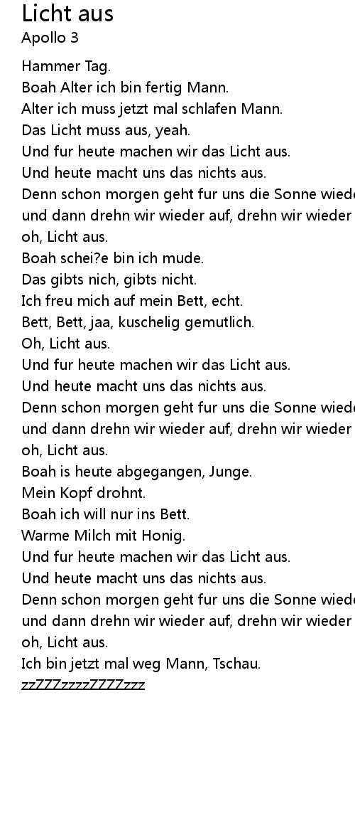 | Das Licht muss aus, yeah. | |