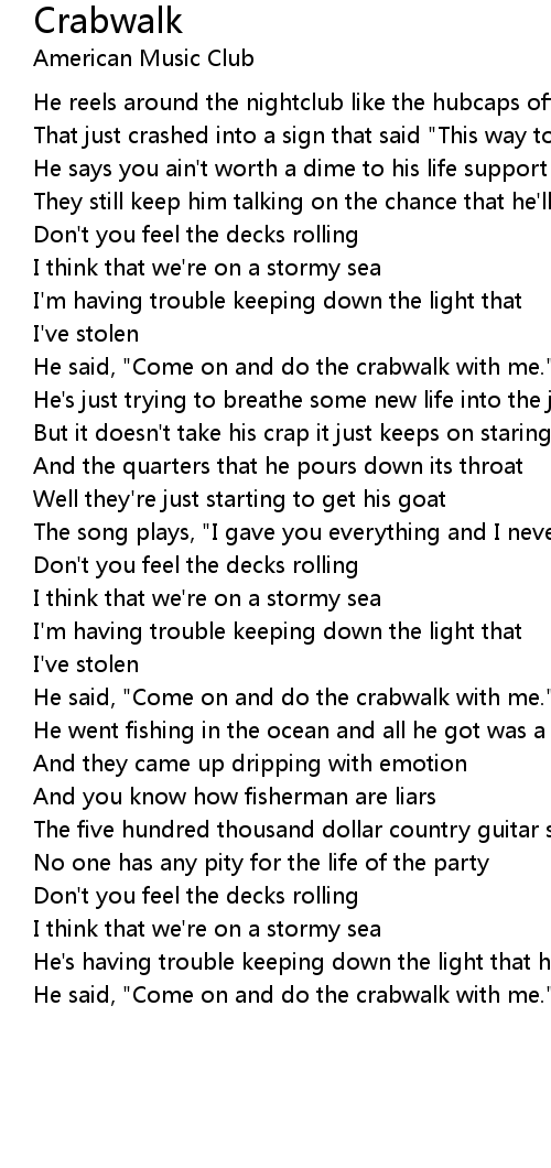 He said, "Come on and do the crabwalk with me." |