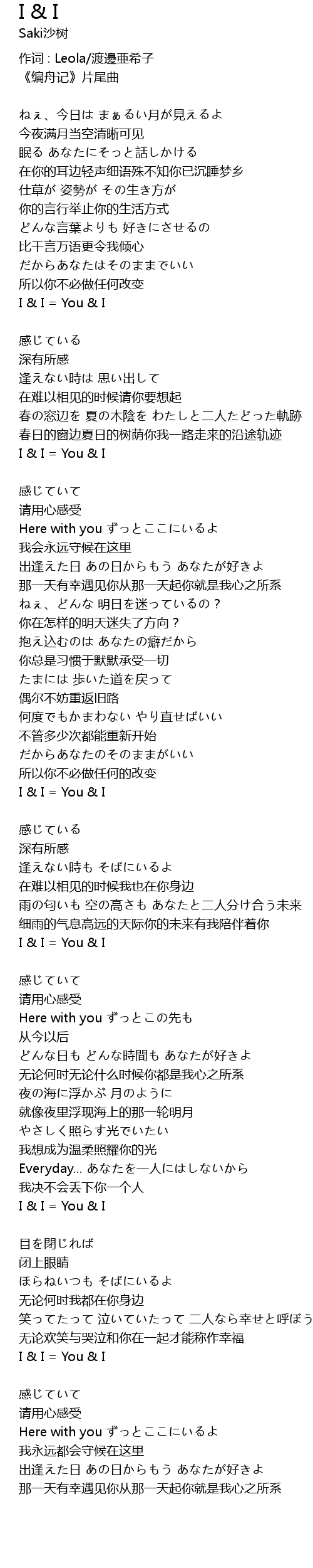| 作词 : Leola/渡邊亜希子 | |