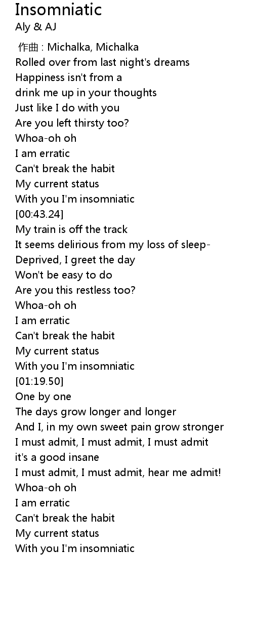 | [00:50.06] | It seems delirious from my loss of sleep- |