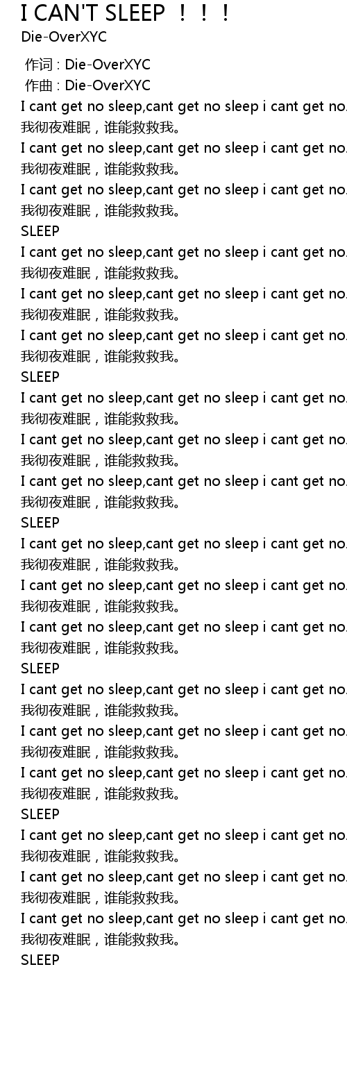 | [00:34.359] | I cant get no sleep,cant get no sleep i cant get no. |