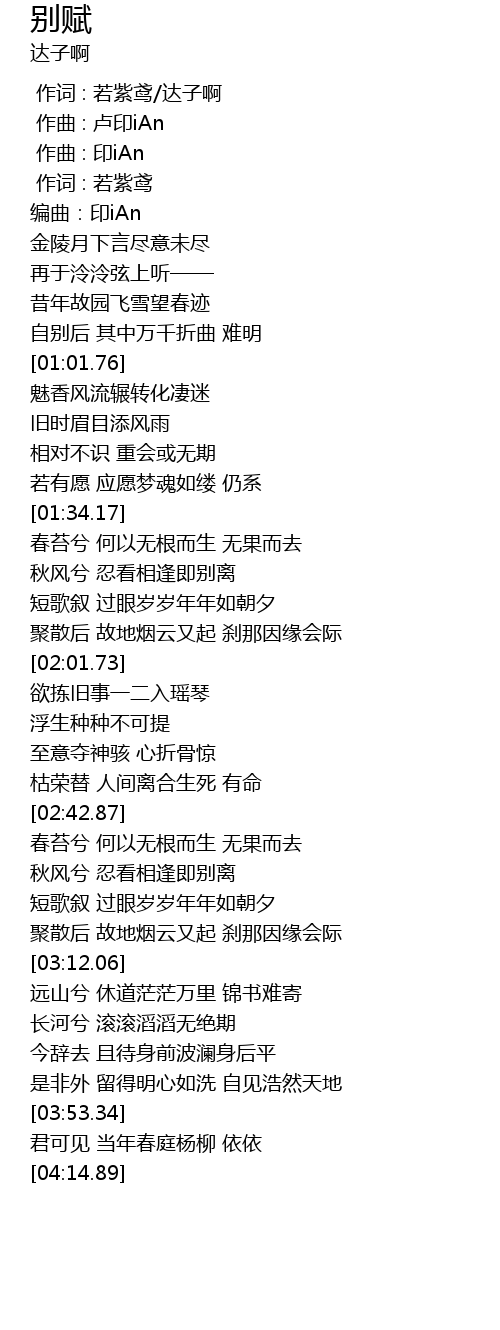 | [03:39.39] | 今辞去 且待身前波澜身后平 |