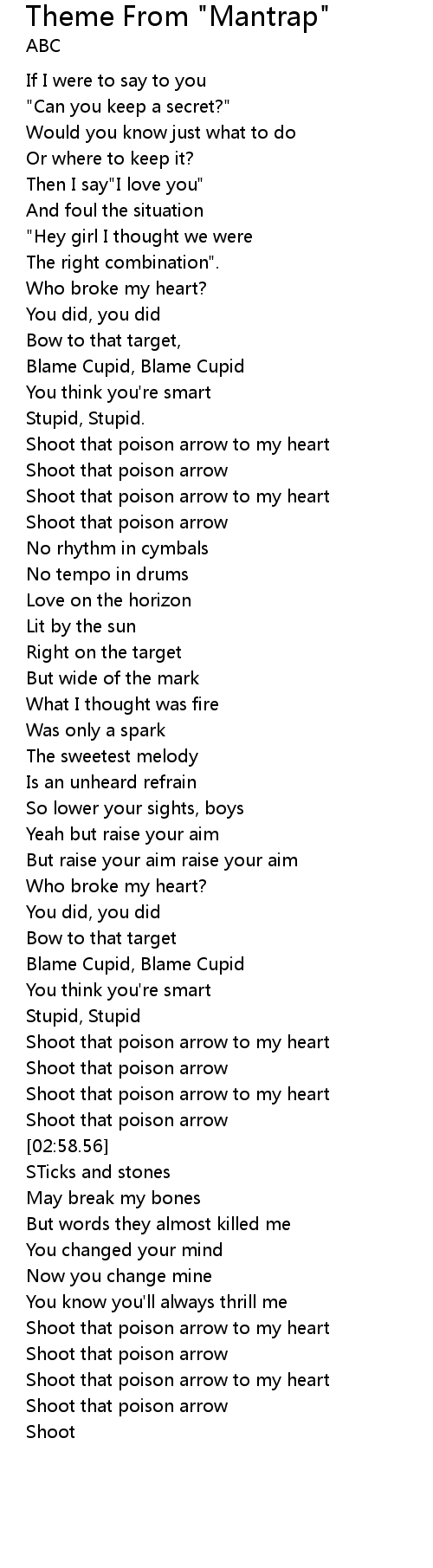 | [03:54.91] | Shoot that poison arrow to my heart |