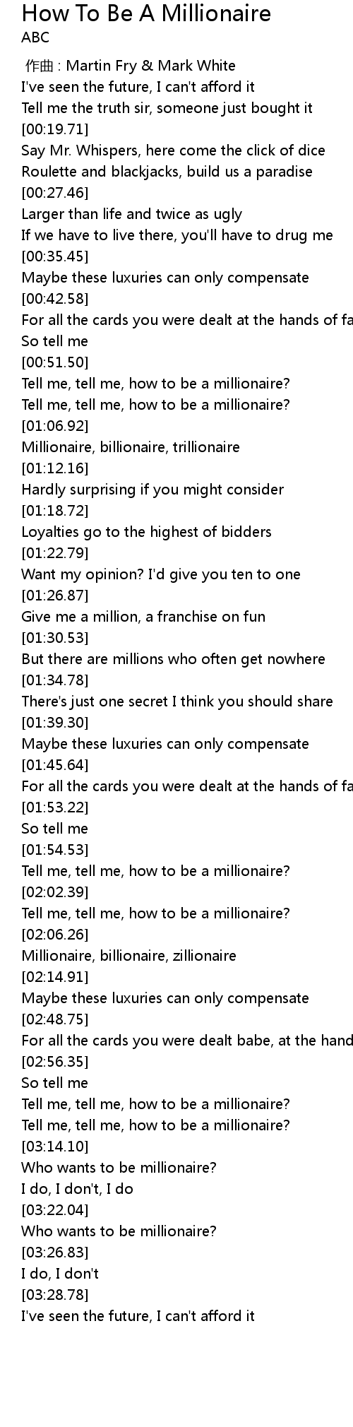 | [03:06.70] | Tell me, tell me, how to be a millionaire? |