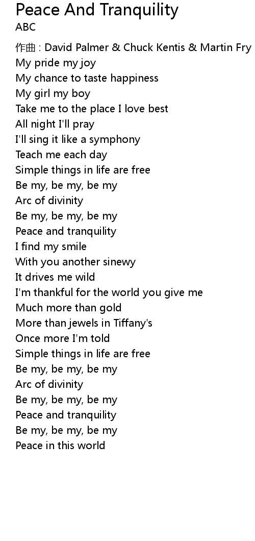 | Song | Peace And Tranquility |