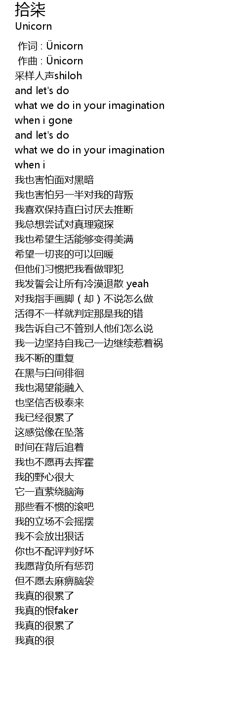 | [00:00.000] | zuò qǔ : Ü nicorn |