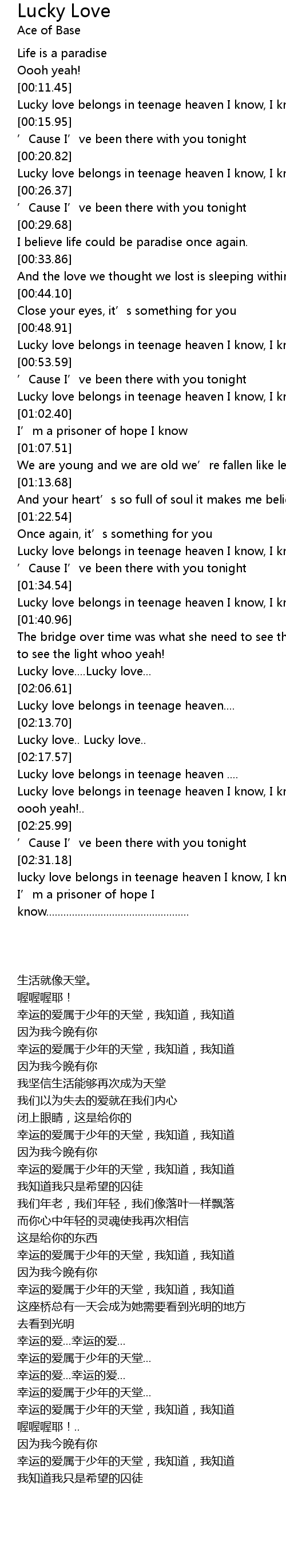 | [02:05.00] | Lucky love....Lucky love... |