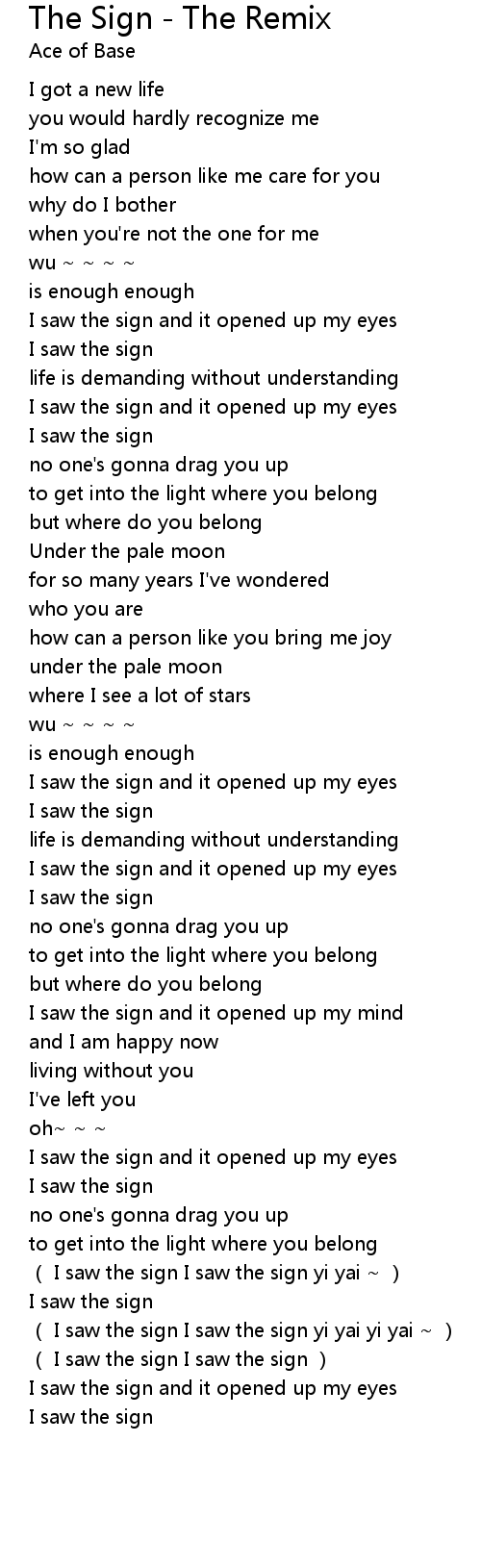 | [01:53.94] | I saw the sign and it opened up my eyes |