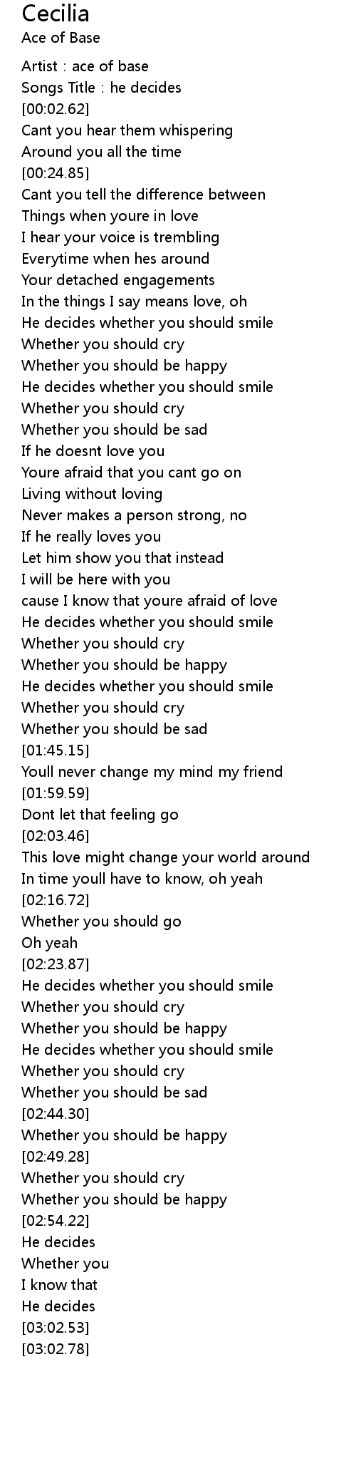 | [00:00.63] | Artist:ace of base |