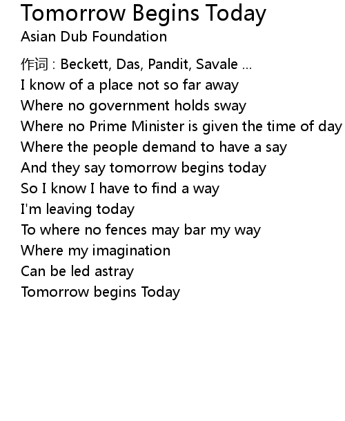 | Tomorrow begins Today |