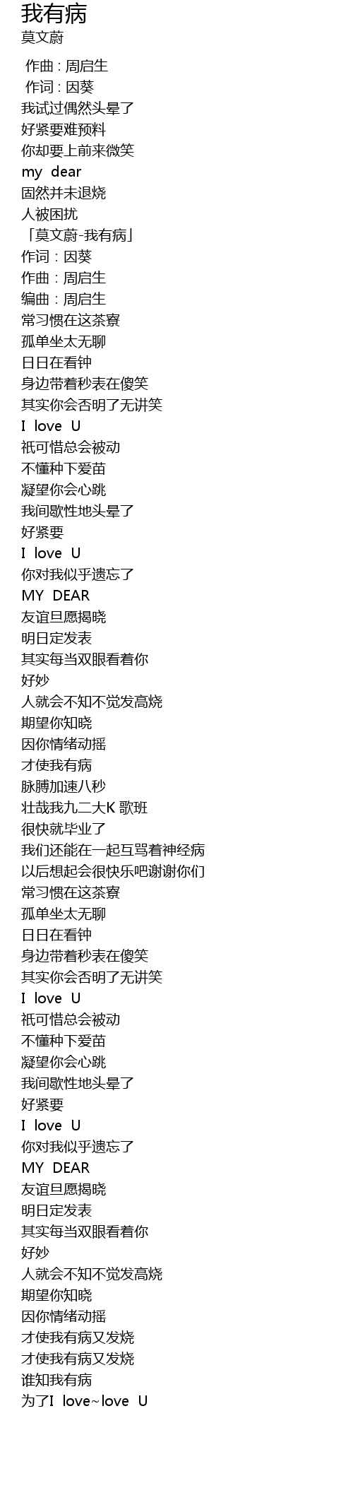 | [00:23.147] | mò wén wèi wǒ yǒu bìng |