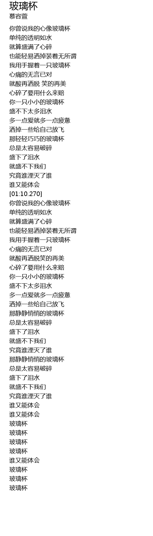 | [03:10.60] | 玻璃杯 |