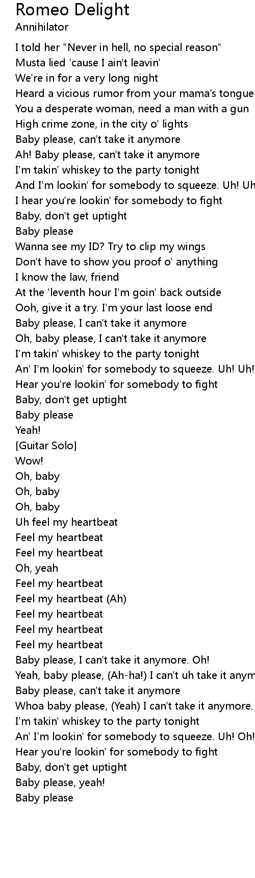 Whoa baby please, (Yeah) I can't take it anymore. Whoa! |