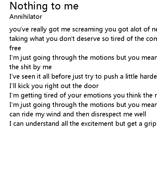 you've really got me screaming you got alot of nerve all the using and abusing taking what you don't deserve so tired of the commotion you think it's all for free |