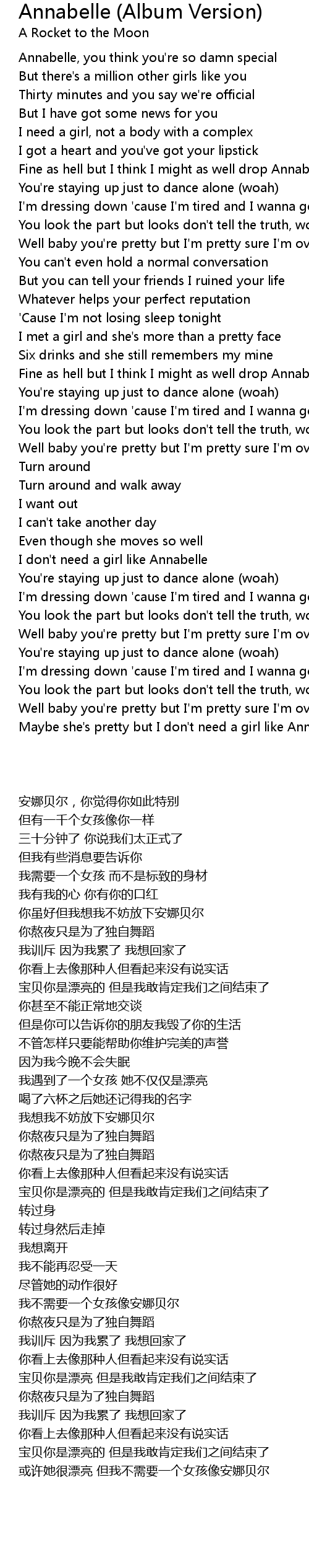 Maybe she's pretty but I don't need a girl like Annabelle |