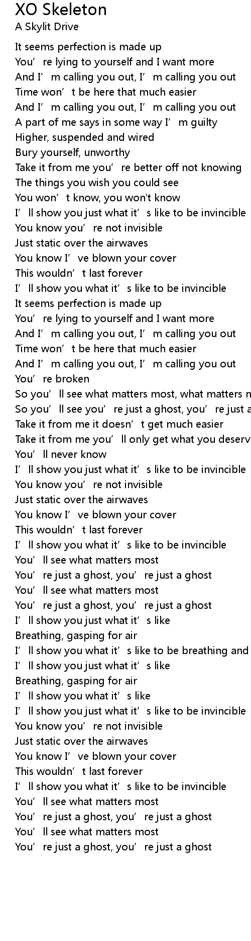| Song | XO Skeleton |