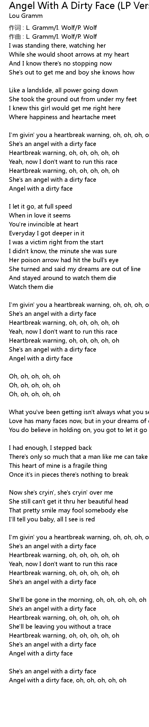 | Angel with a dirty face, oh, oh, oh, oh, oh |