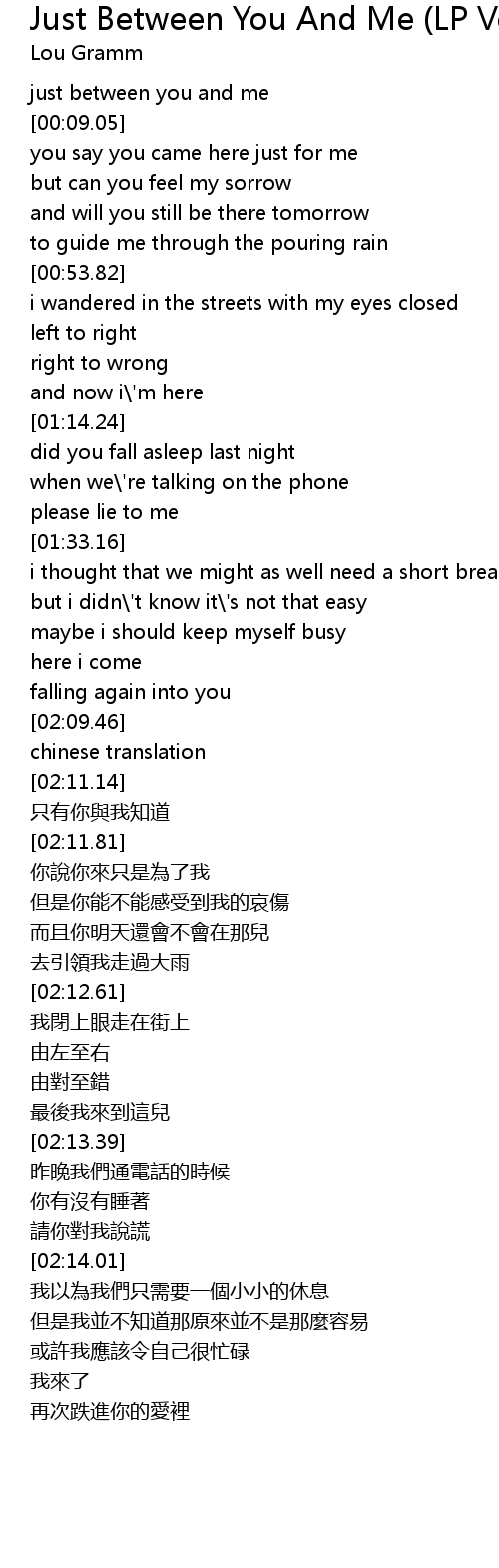 | [00:01.83] | just between you and me |
