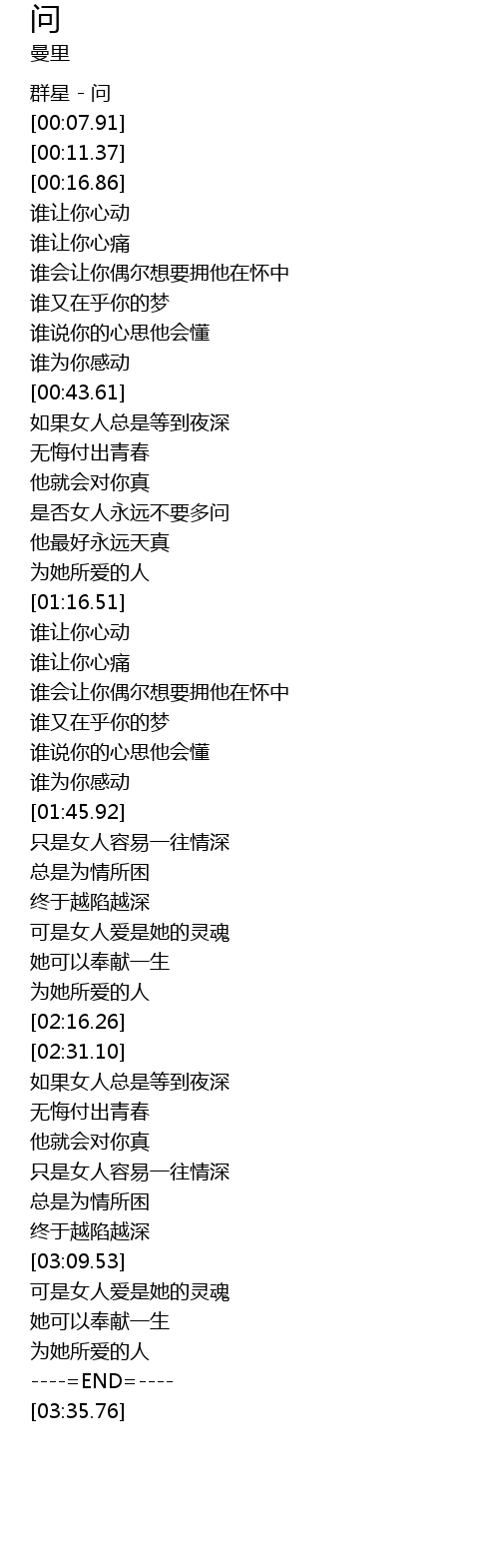 | [00:05.21] | 群星 - 问 |
