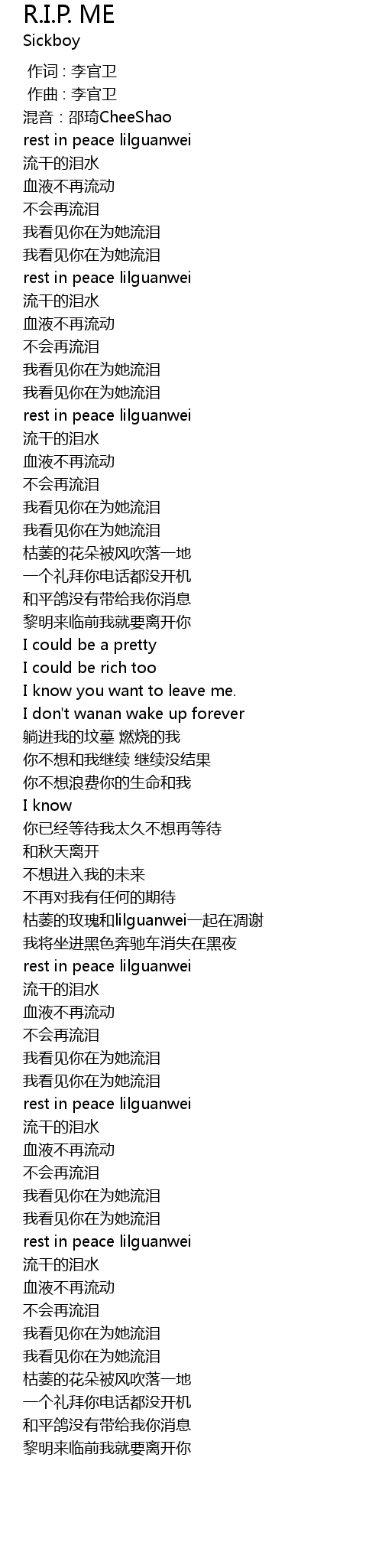 | [02:03.97] | rest in peace lilguanwei |