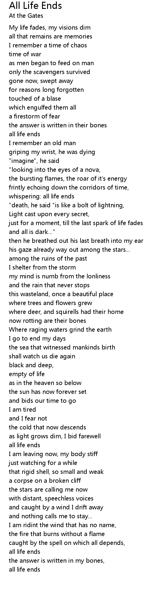 whispering: all life ends |