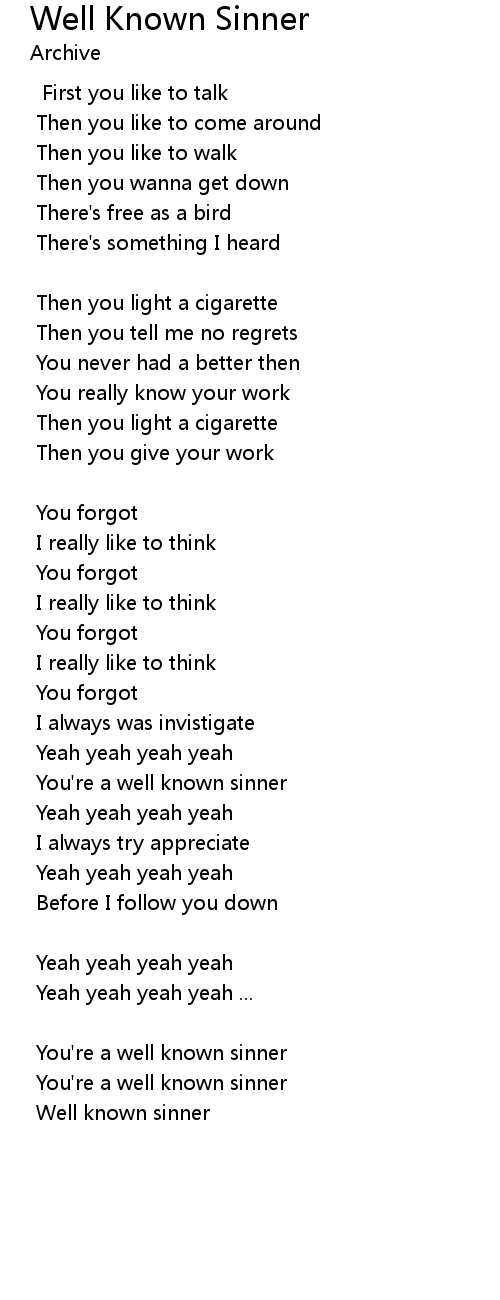 You're a well known sinner |