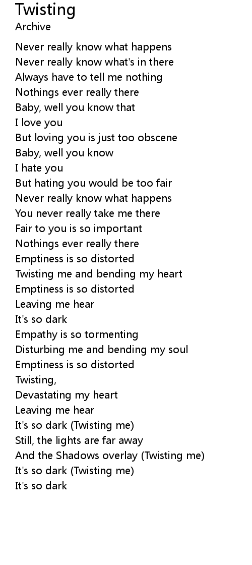 It's so dark (Twisting me) |