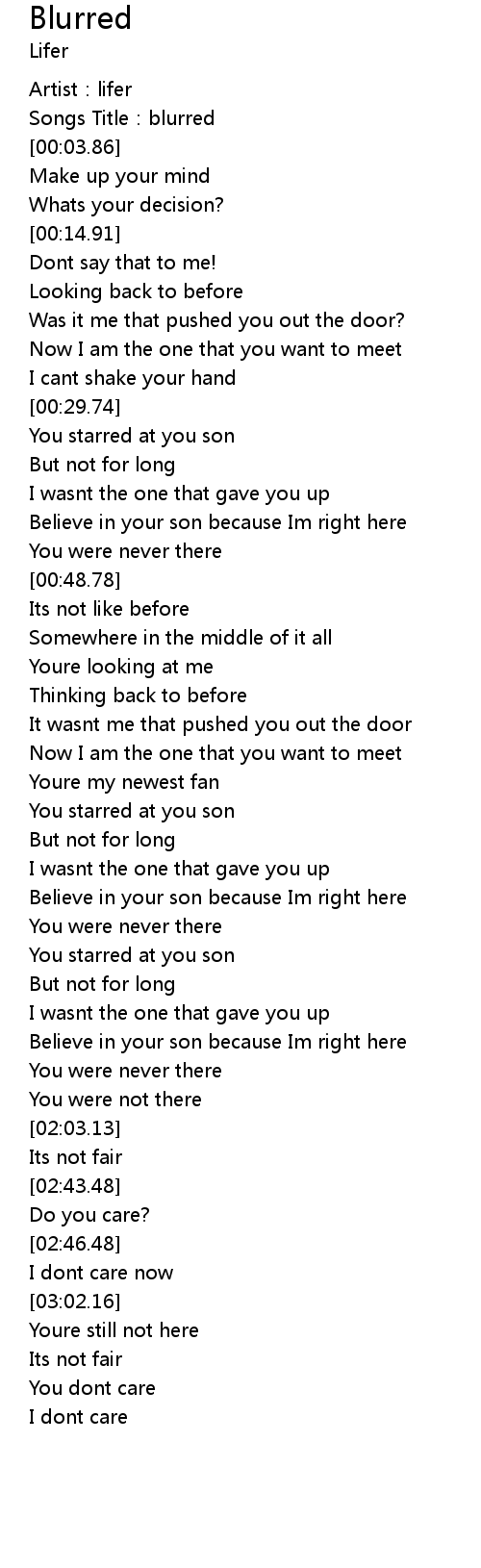 | [00:02.62] | Songs Title: blurred |