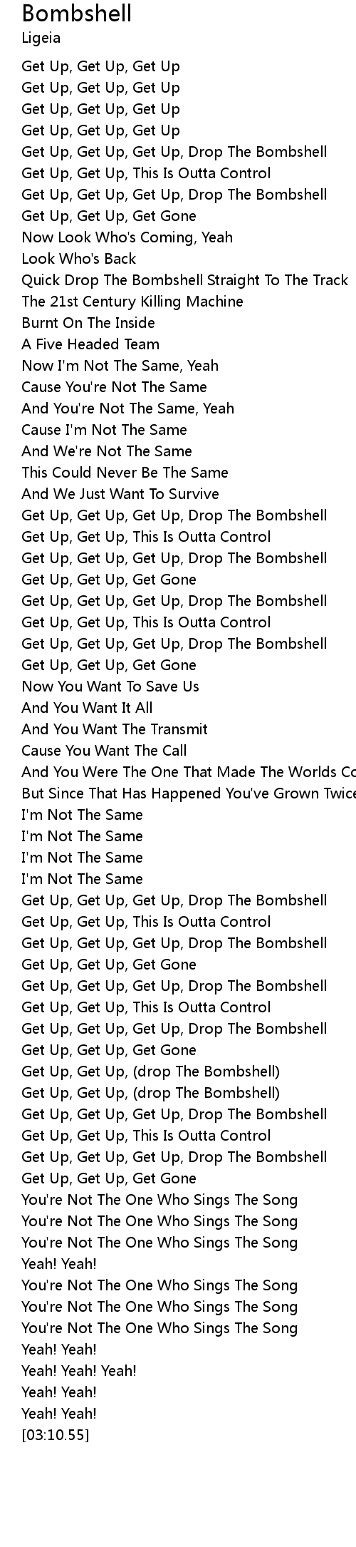 | [02:22.03] | Get Up, Get Up, Get Up, Drop The Bombshell |