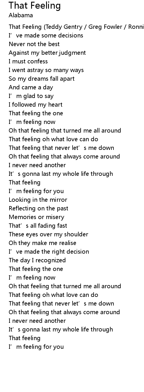 | That Feeling Teddy Gentry Greg Fowler Ronnie Rogers | |