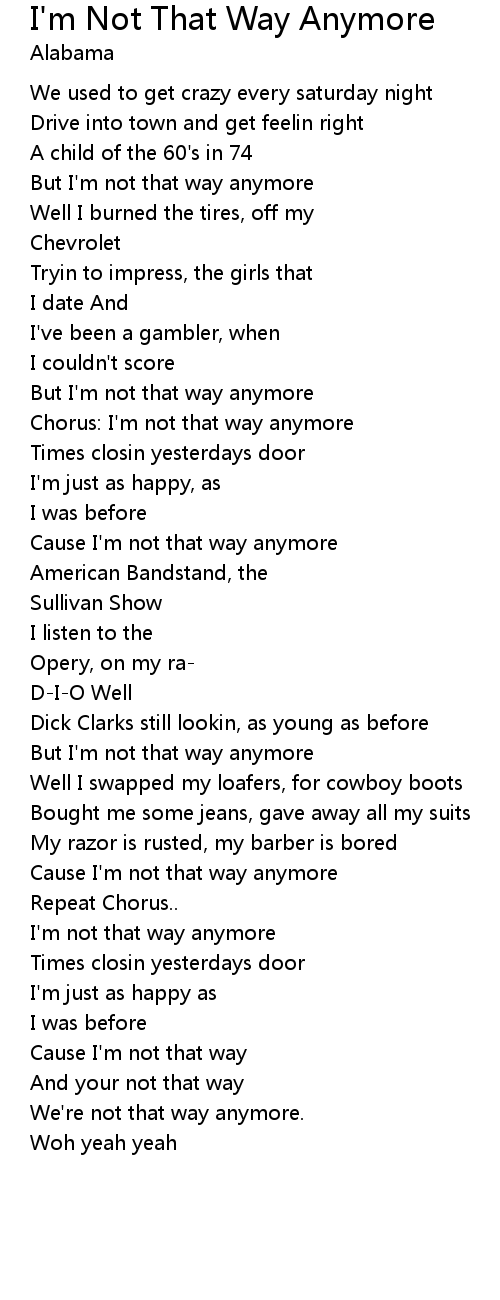 | Chorus: I'm not that way anymore | |