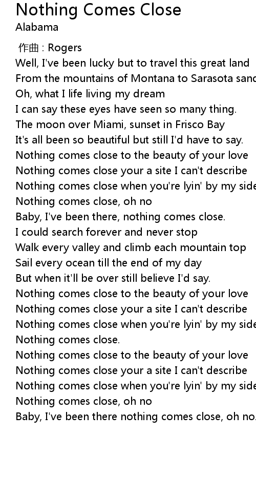 | [02:45.39] | Nothing comes close, oh no |