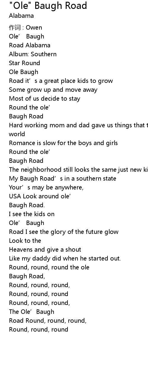 | Song | "Ole" Baugh Road |