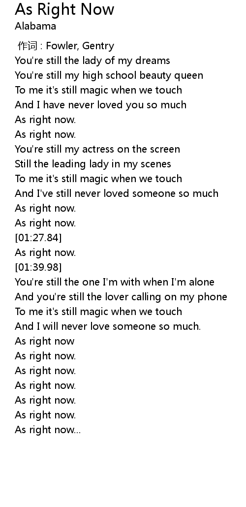 | [00:42.97] | As right now. |