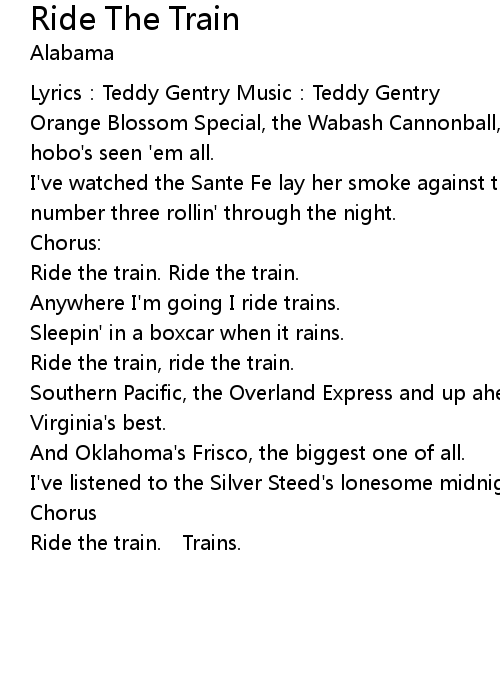 | Orange Blossom Special, the Wabash Cannonball, the Chattanooga ChooChoo, this hobo' s seen ' em all. | |