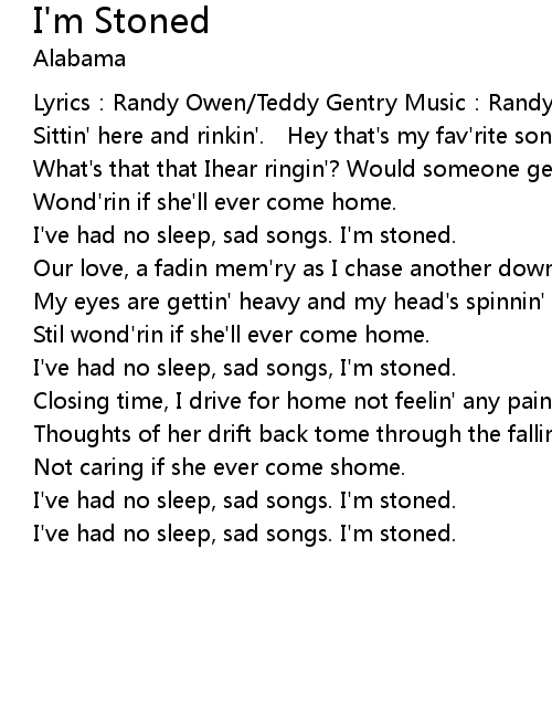 | I' ve had no sleep, sad songs, I' m stoned. | |