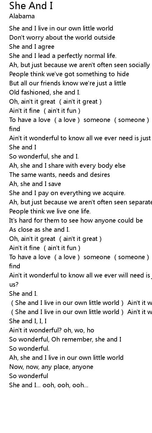 | [02:12.18] | (She and I live in our own little world) Ain't it wonderful? |