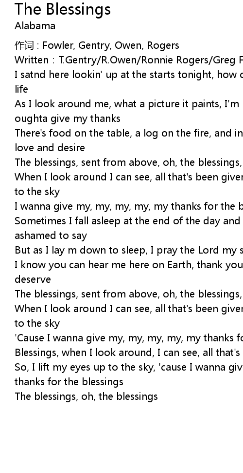 | The blessings, sent from above, oh, the blessings, a life full of love | |