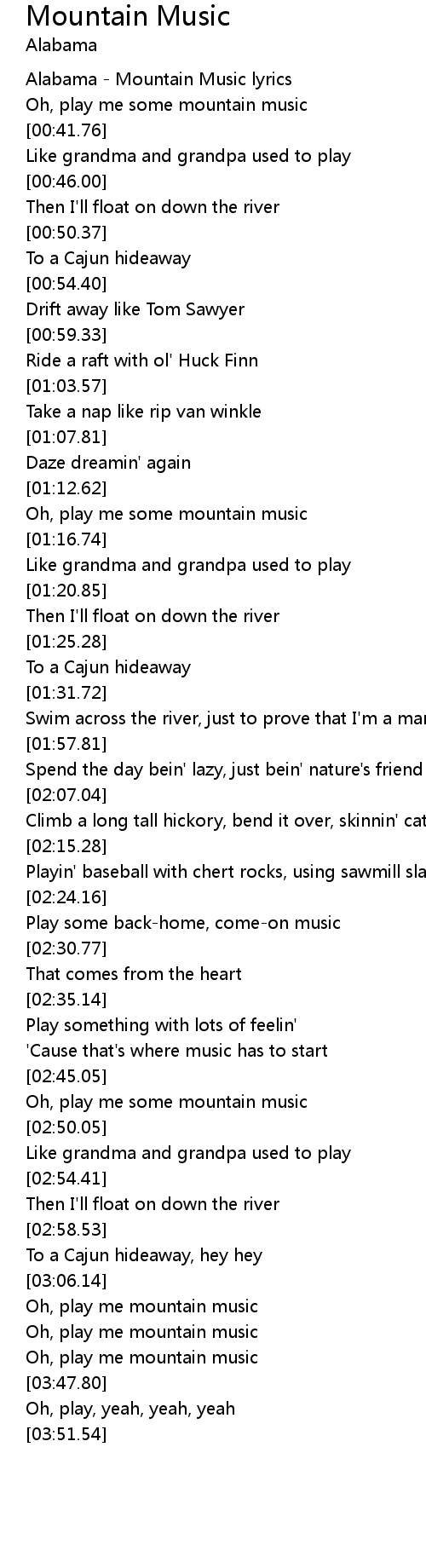 Alabama - Mountain Music lyrics |