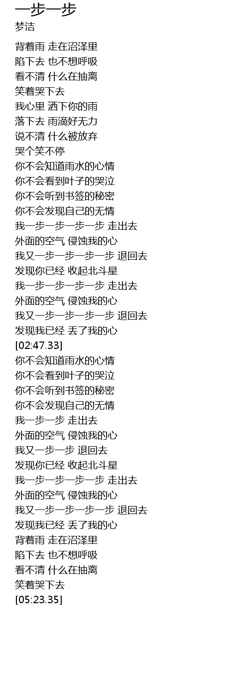 | [01:49.21] | 我一步一步一步一步 走出去 |