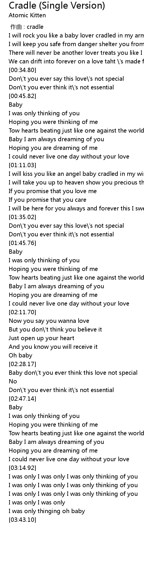 | [00:11.45] | I will rock you like a baby lover cradled in my arms |