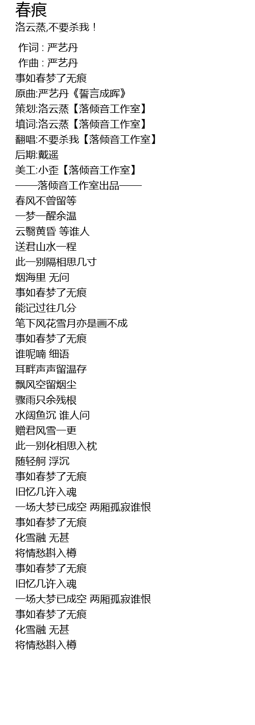 | [00:04.74] | 原曲:严艺丹《誓言成晖》 |