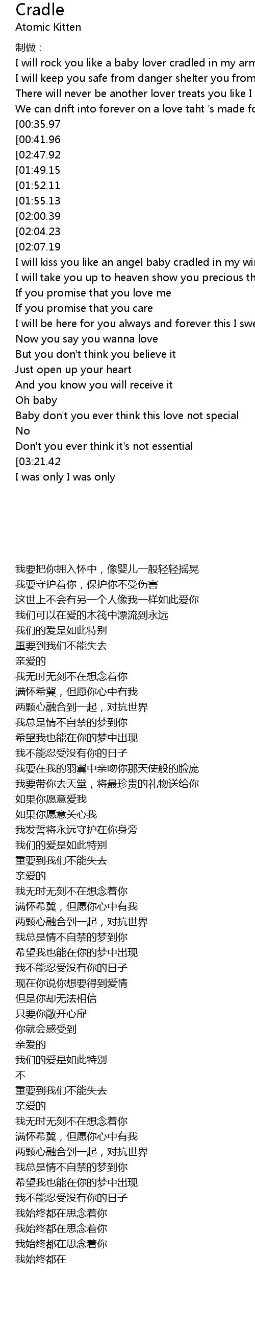 | [00:11.95] | I will rock you like a baby lover cradled in my arms |