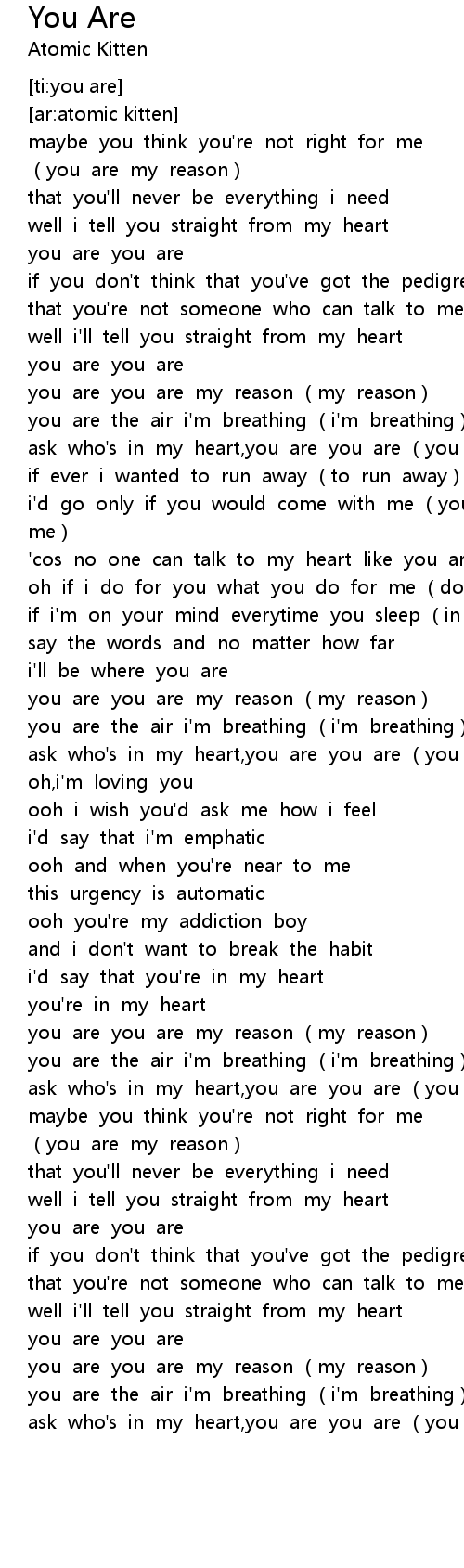 | [01:44.362] | you are the air i' m breathing i' m breathing |