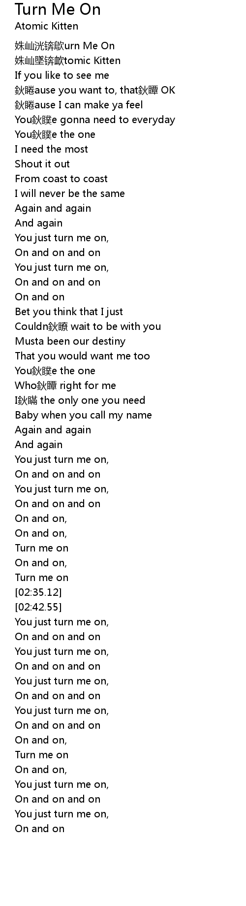 | [00:00.00] | 姝屾洸锛歍urn Me On |
