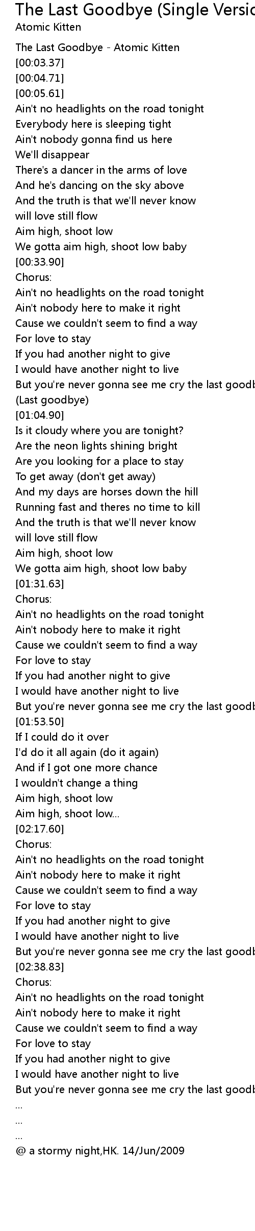 The Last Goodbye - Atomic Kitten |