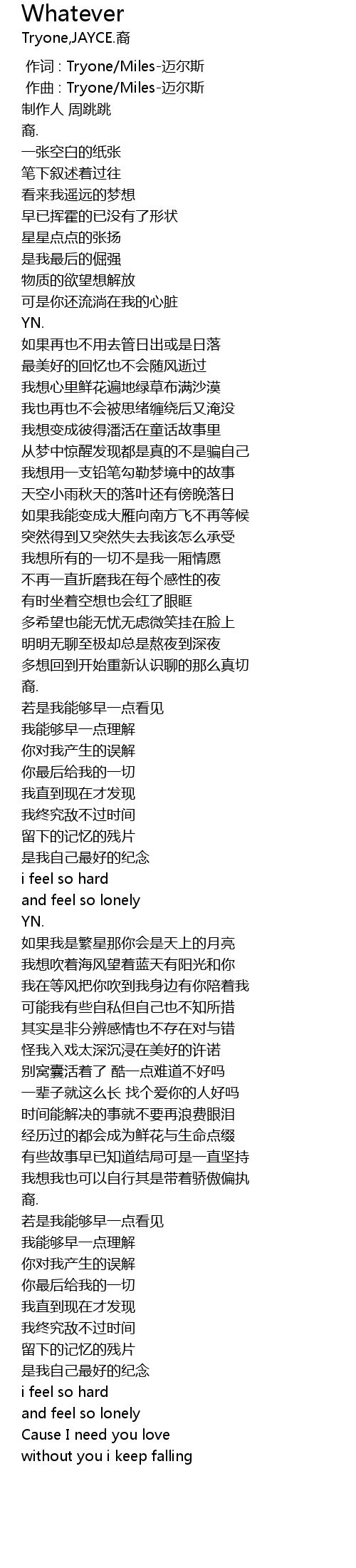 | [00:00.000] | 作词 : Tryone/Miles-迈尔斯 |