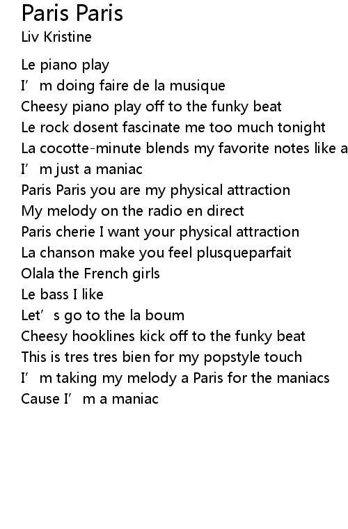| I’m taking my melody a Paris for the maniacs | |