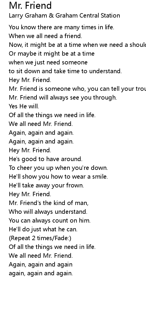 Mr. Friend is someone who, you can tell your troubles to. |